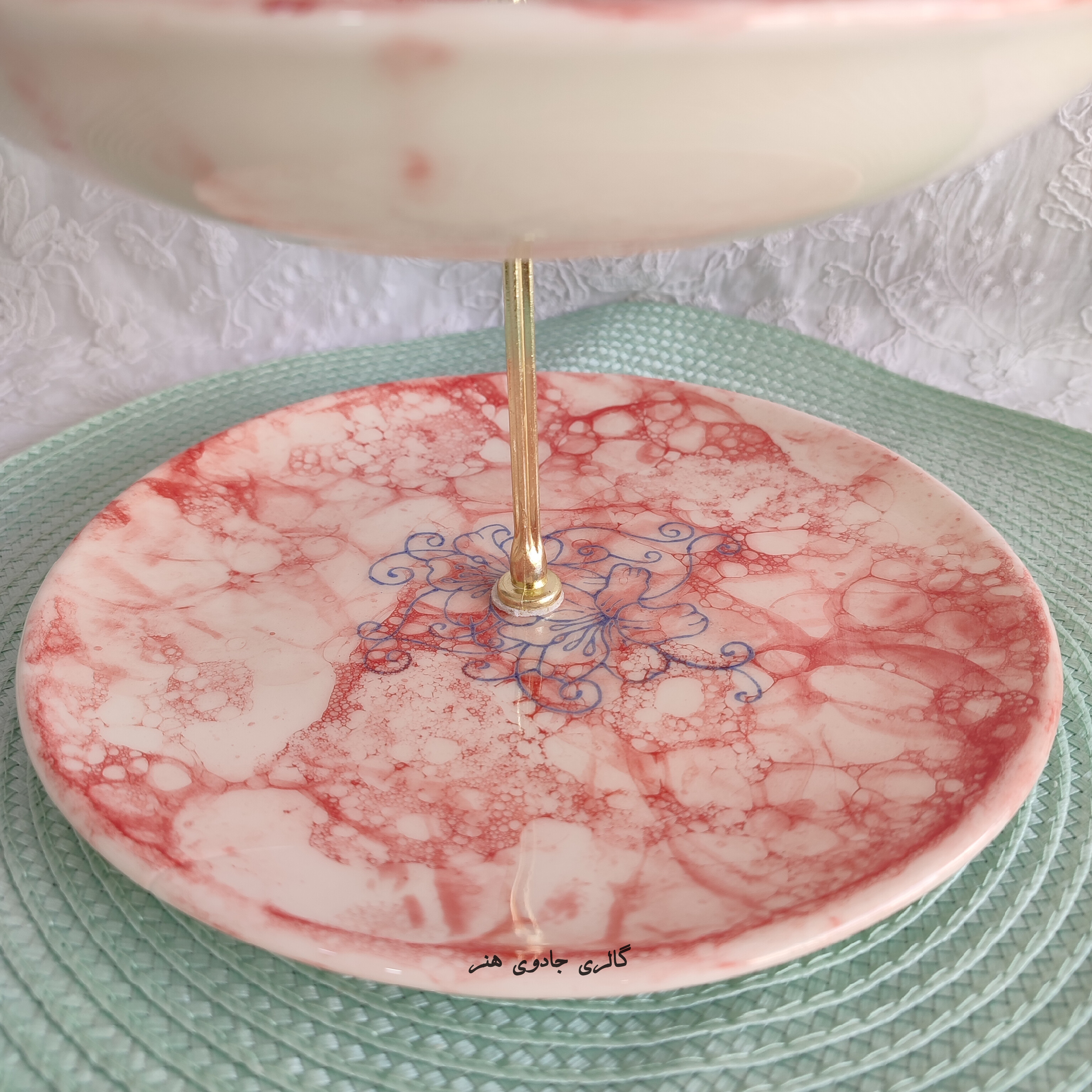 شیرینی خوری (شکلات خوری) سرامیکی دو طبقه دستساز: ۵