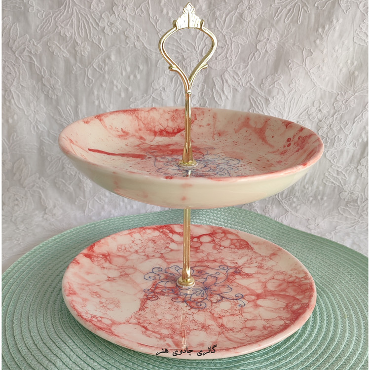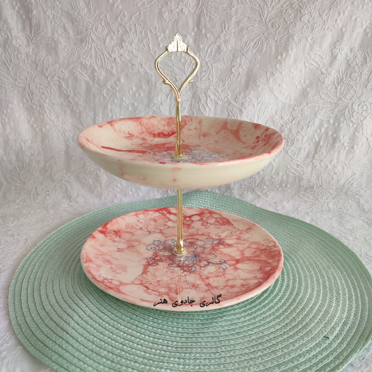شیرینی خوری (شکلات خوری) سرامیکی دستساز ۲طبقه
